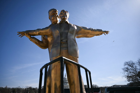 Foto: Patung Mesra Trump dan Epstein Berdiri di Depan Gedung Capitol AS